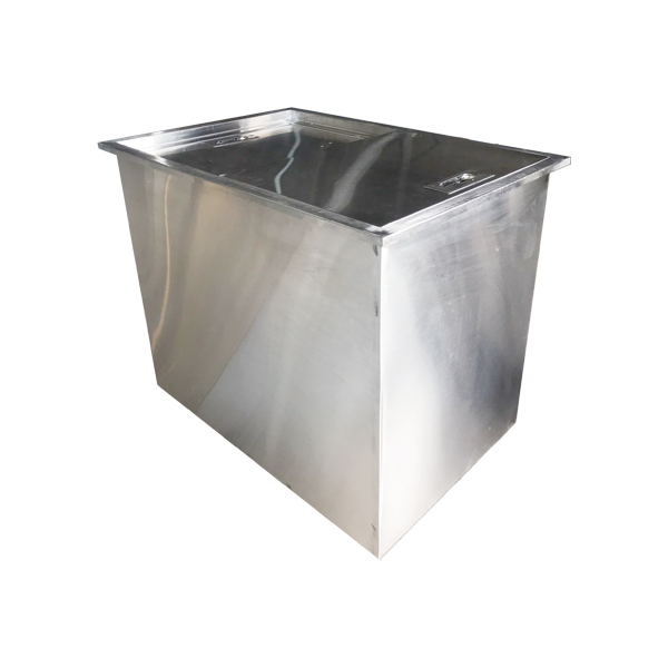 Thùng đá âm bàn inox có thiết kế hình chữ nhật hiện đại, lắp âm bàn giúp tối ưu diện tích quầy pha chế. Khoang chứa rộng rãi, trữ được nhiều đá, đồng thời tiện dùng để ướp lạnh rượu, trà sữa, nước ép… phục vụ pha chế nhanh chóng và hiệu quả.